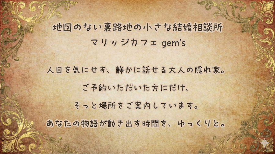 地図のない裏路地の小さな結婚相談所「マリッジカフェ gem’s(ジェムズ)」